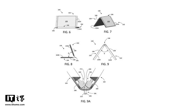 这项专利申请于7月25日。按照专利上的示意图,这个设备中间使用了铰链连接。专利使用了大量的文字,描述在两侧或其中一侧显示内容的方法,以及对此进行控制的软件。