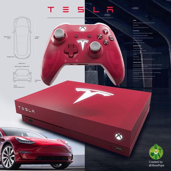 自己最喜欢的2个品牌融合在一个产品上,并且全世界只有自己一人拥有,那是一种非常奇妙的感觉。Xbox市场经理Aaron Greenberg就实现了这一个愿望,在多方面的帮助下,他如愿以偿获得了“特斯拉”版X1X主机。该主机由Xbox Pope设计、改造,Extreme Consoles帮助制作手柄,并且获得了特斯拉的支持。
