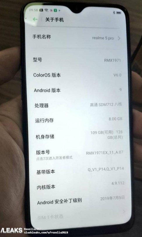 从泄露的图像上可以看出,这部设备的型号便是RMX1971,采用了水滴屏以及极窄边框设计,同时还搭载了高通骁龙712八核处理器并辅以8GB RAM+128GB机身存储方案,出厂预装基于Android 9的Color OS 6.0系统并支持双卡双待,预计还将采屏下指纹识别方案。遗憾的是此次曝光的只有正面照,同时电池容量信息目前尚不明确,不过官方确认将采用VOOC 3.0快充,官方称半小时可以充到55%。